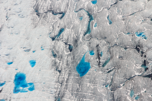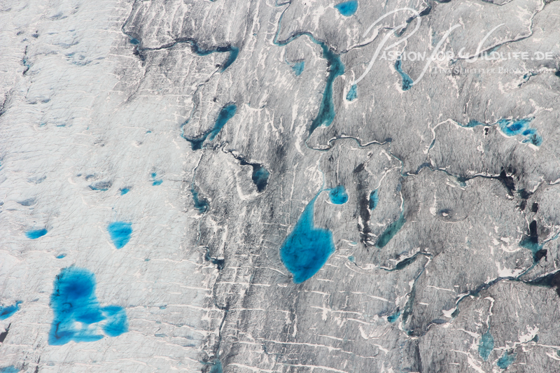 Teilweise haben sich auf den Gletschern Pools mit türkisblauem Wasser gebildet.