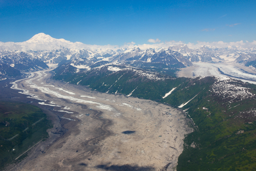 Die Gletscher erstrecken sich über etliche Kilometer durch die Alaska Range.