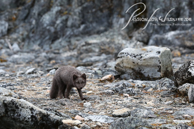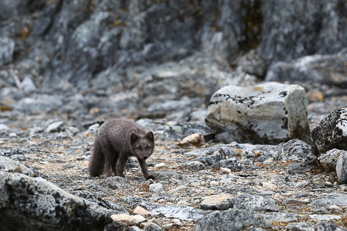 Dieser neugierige „blaue“ Polarfuchs kam bis auf wenige Meter an uns heran