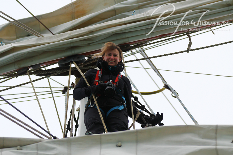 Die Fotografin oben auf dem Mast