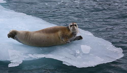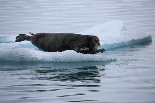 Diese Bartrobbe ergriff schnell die Flucht, als sie unser Schiff entdeckte