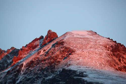 Die letzten Sonnenstrahlen lassen die Bergspitzen erglühen