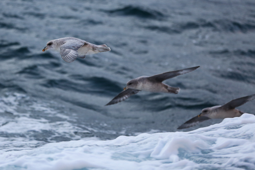 Auf der stürmischen Rückfahrt begrüßten uns diese Eissturmvögel. Sie hatten sichtlich Freude an dem Wind